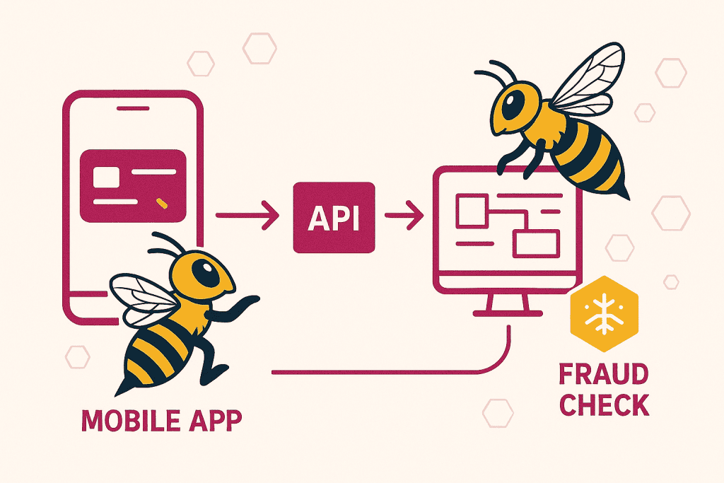 Example: In the debit card freeze flow, you sketch a diagram that includes: